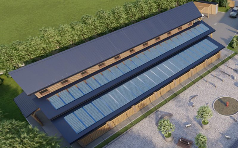Features will include renewable energy solutions such as passive solar design, waste reduction systems, and opportunities for dogs to become comfortable living in a home-like environment.